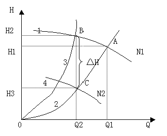 根據(jù)流體力學理論,電機軸功率P和風量Q、壓力H之間的關系為: