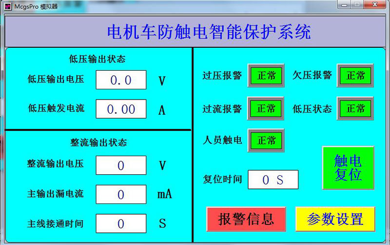 本系統(tǒng)的保護(hù)措施很完善,包括過流、過壓、超溫、欠壓、人員觸電和低壓狀態(tài)等報(bào)警,電流和電壓保護(hù)值可根據(jù)情況在觸摸屏上設(shè)定。在觸摸屏上可監(jiān)測低壓輸出電壓及主線路的電壓值,電流值,主線路接通時(shí)間等信息。