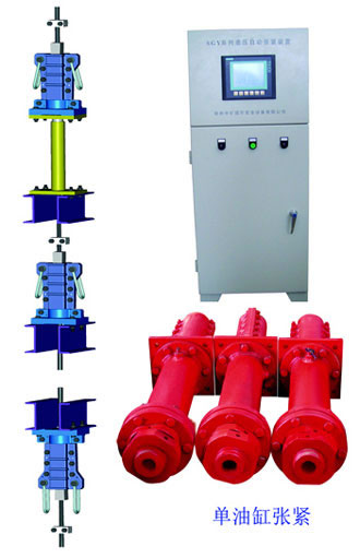 (9)根據(jù)計(jì)算罐道繩張力,并使罐道繩張力差值為5%~10%。向液壓缸注入液壓油,由壓力表顯示,依次調(diào)整各罐道繩壓力。