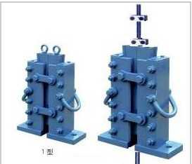 (5)將固定裝置、液壓缸按圖紙尺寸固定好,然后用手錘敲擊雙楔塊,使其夾緊罐道繩。