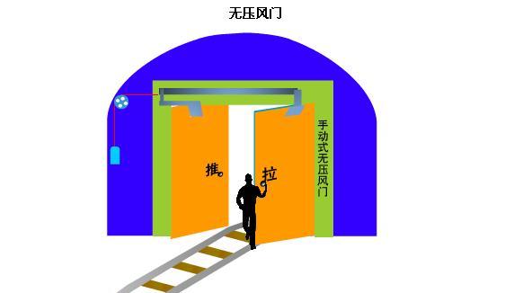 無壓風門主要用于煤礦井下進回風巷和主要進回風巷之間的聯(lián)絡巷中。當通過風門時,風門可輕松打開,松手后自動關閉,有效地避免風流短路和通風故障的發(fā)生,為煤礦標準化和現(xiàn)代化管理奠定基礎。