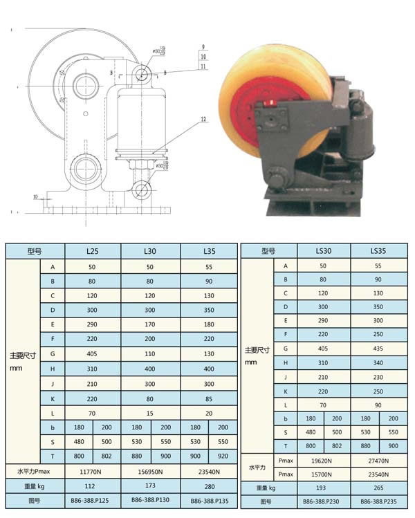 滾輪罐耳(又名滾輪導(dǎo)向裝置)是提升容器(罐籠或箕斗)的組成部分,它起導(dǎo)向和緩沖作用。是確保提升容器沿導(dǎo)軌平穩(wěn)運行的關(guān)鍵所在。