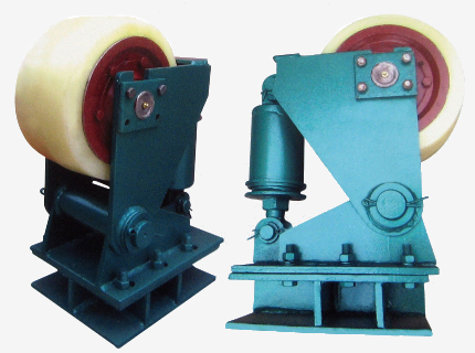 滾輪罐耳主要由輪軸、支架、緩沖裝置、底座等組成。