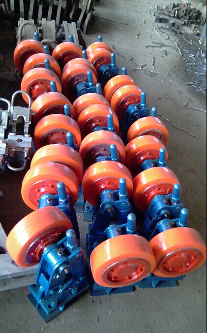 滾輪罐耳(又名滾輪導(dǎo)向裝置)是提升容器(罐籠或箕斗)的組成部分,它起導(dǎo)向和緩沖作用。是確保提升容器沿導(dǎo)軌平穩(wěn)運(yùn)行的關(guān)鍵所在。