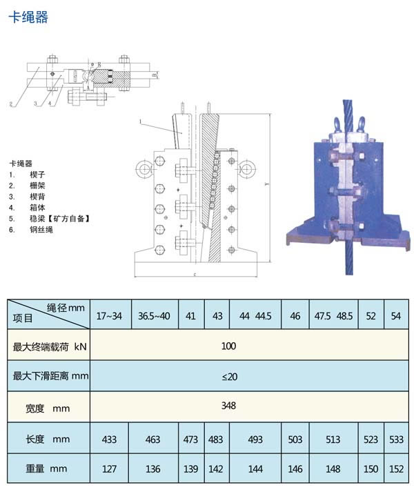 2、采用銷軸鉸鏈結(jié)構(gòu),裝卡速度快,只需數(shù)分鐘即可完成卡繩。
